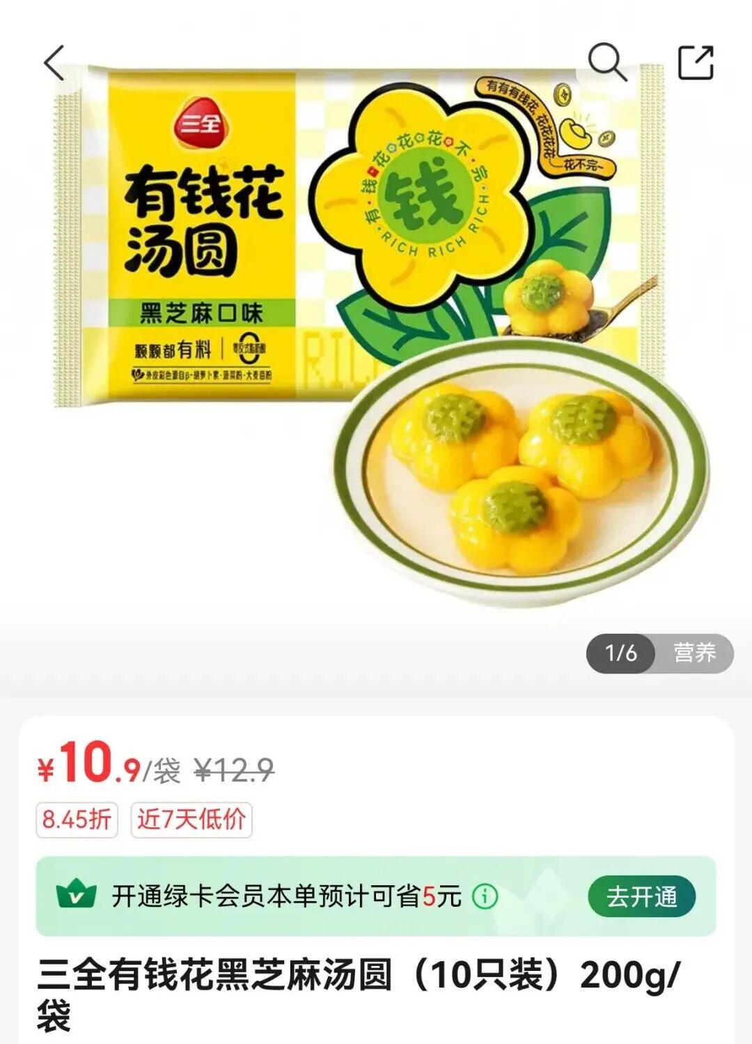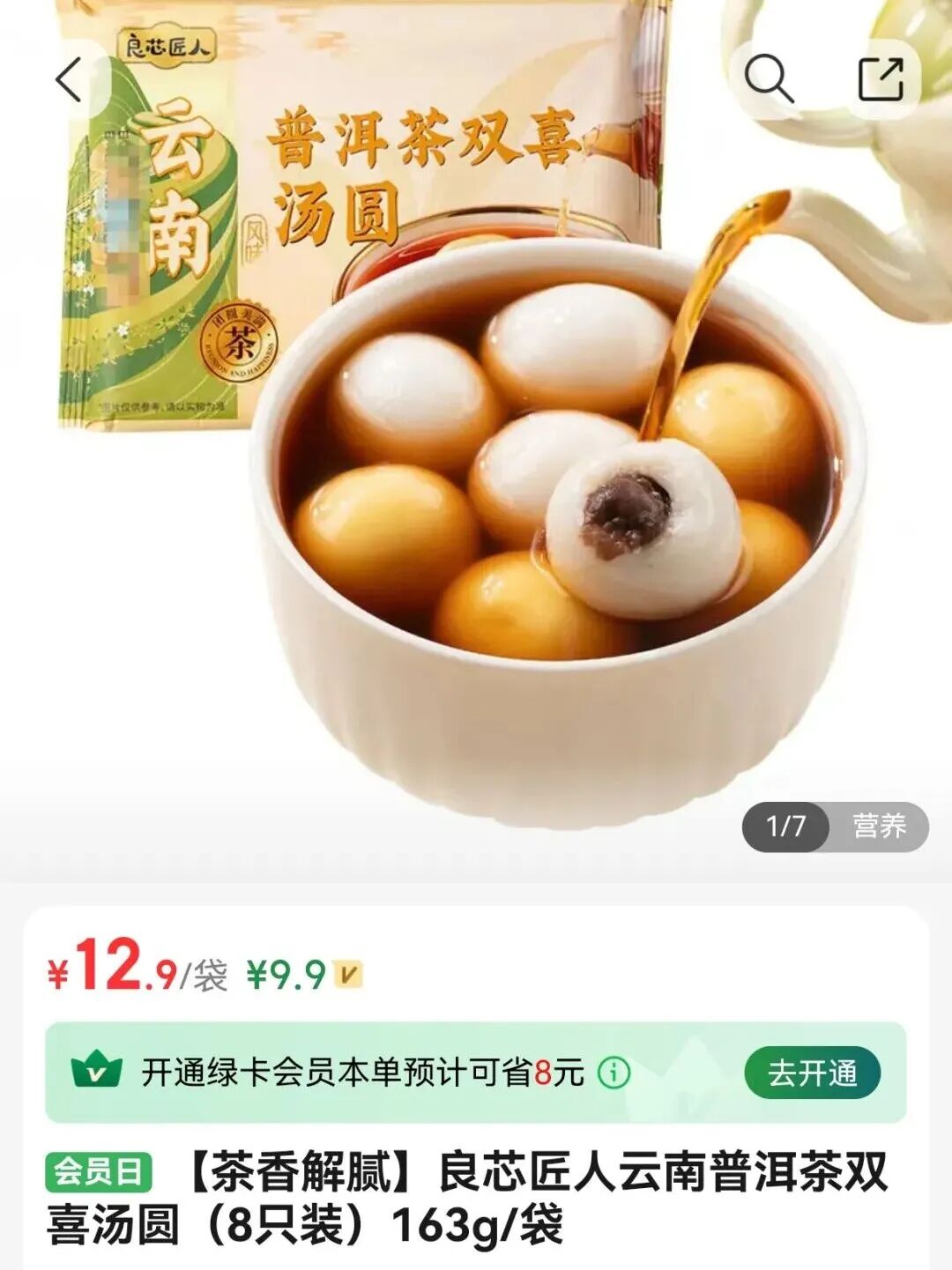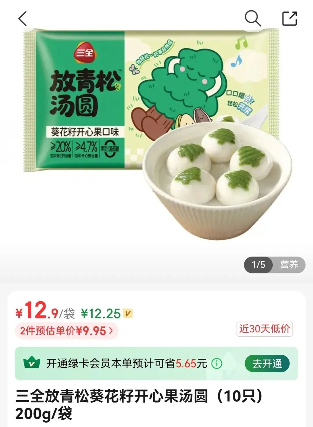 一碗汤圆吃出2种新奇口味!一半是豆沙馅,一半是五仁馅每一口都软糯香甜!更出奇的是这袋汤圆里还配有云南一级陈熟普洱茶汤深红透亮滋味醇厚顺滑吃一口甜甜的圆子喝一口清香的茶汤甜而不腻这搭配还真是有点奇妙呀!三全·放青松葵花籽开心果汤圆
