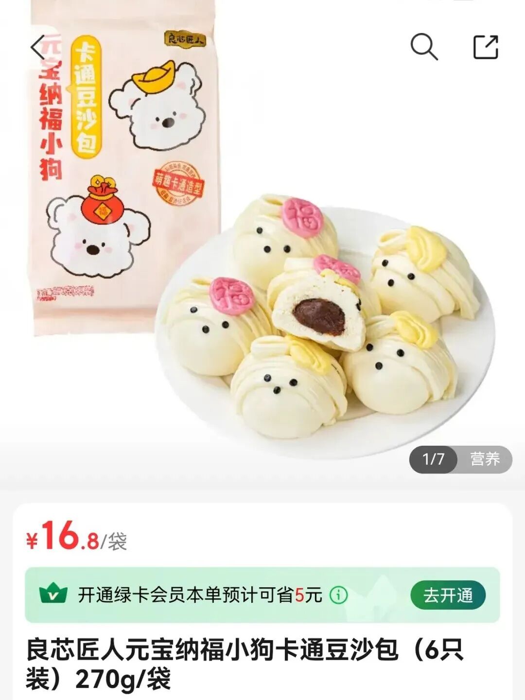 第一眼就被这朵花花的造型吸引了!上面还顶着一枚“小钱钱”寓意“有钱花,花不完”~也太讨喜了吧!醒目的黄色来自胡萝卜素绿色则是来自菠菜粉、大麦苗粉芝麻、花生、瓜子仁入馅煮上这样一碗“有钱花”心情也明媚起来啦!良心匠人·元宝纳福小狗卡通豆沙包