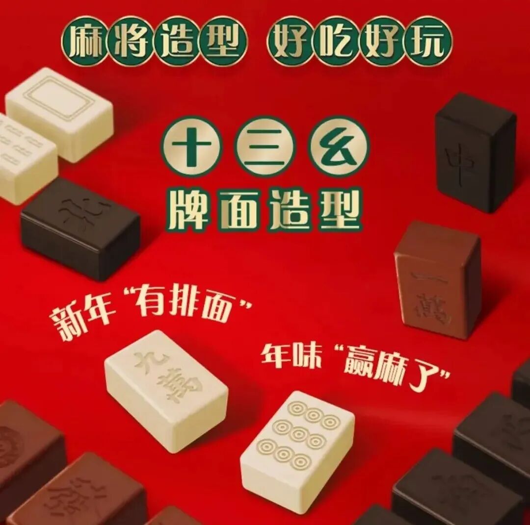 “麻友”们看过来~新年的“排面”来了!这一大盒里面有3种口味的巧克力浓郁白巧+清凉夹心黑巧+卡布奇诺夹心还自带一副便携麻将牌祝你新年“赢麻了”!
