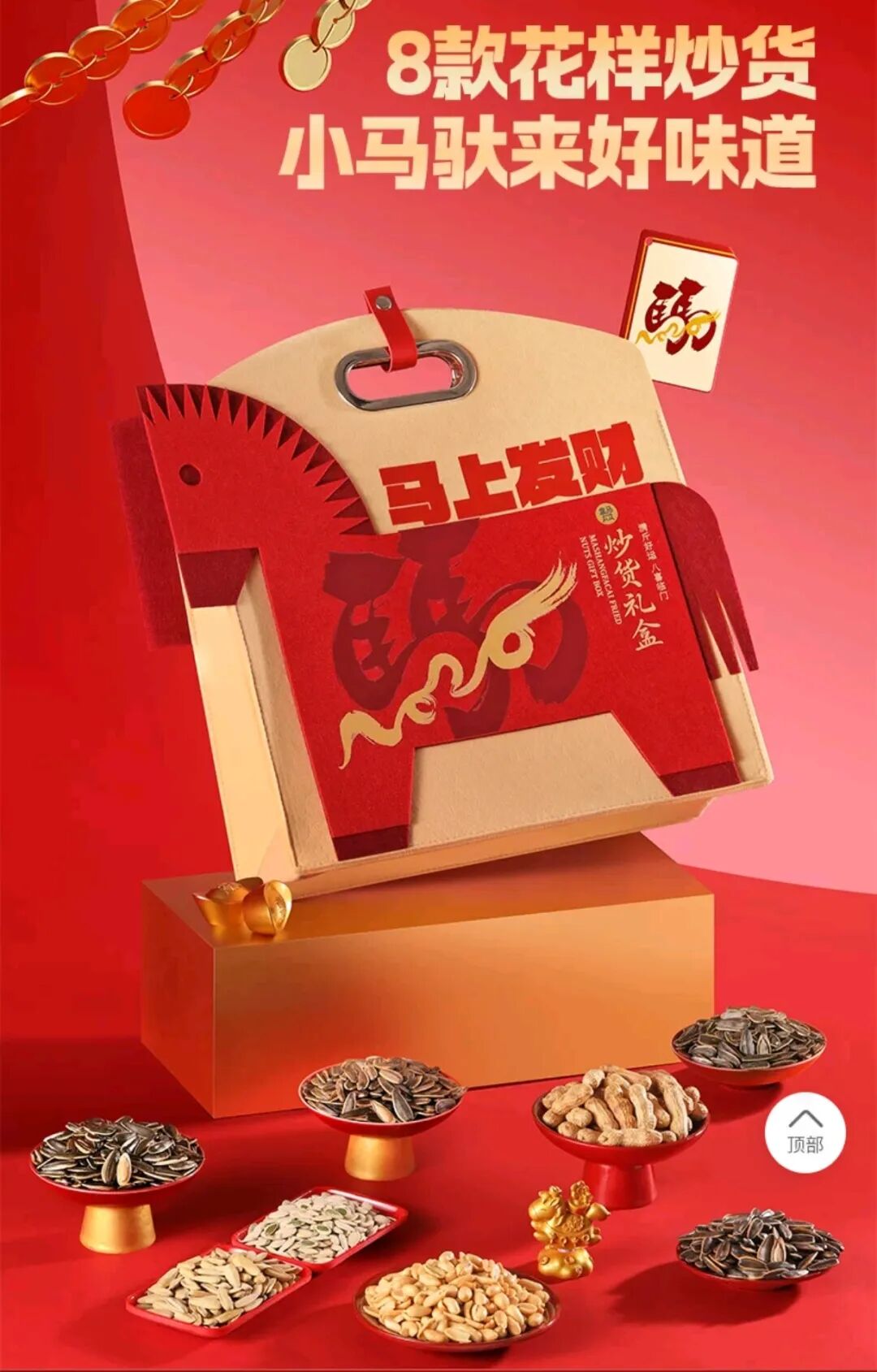 这个红色小马的造型颇有点大牌的味道呢里面满载着8款花样炒货寓意着“八喜临门”每一款都酥脆可口让你嗑到停不下来~