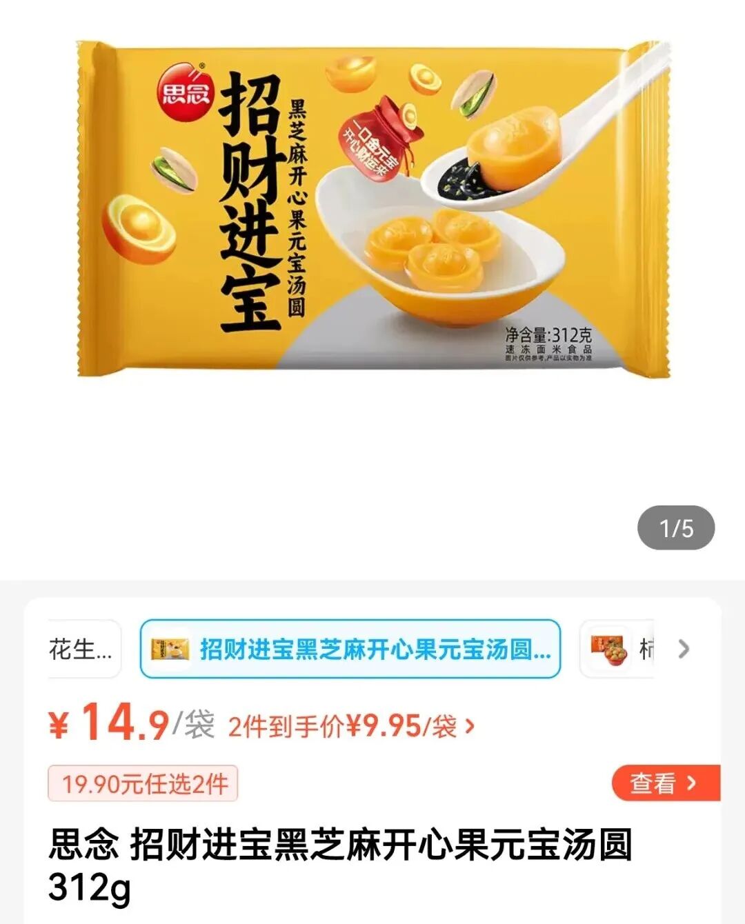 思念·招财进宝黑芝麻开心果元宝汤圆