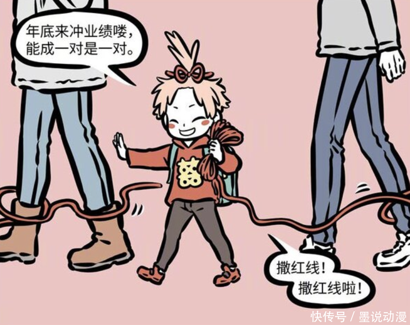 每逢年底,月老都要冲业绩,毕竟神仙们也有业绩考核。月老心态比较好,表示能成一对是一对。对于月老来说,只要红线两头有人,那就算成功。虽说月老不太靠谱,但他还是真想让大家有机会脱单。红线撒起来,那是一条接着一条。估计到年底,鸳鸯们也很繁忙,毕竟要找爱情结晶来做成红线,才能供月老使用。