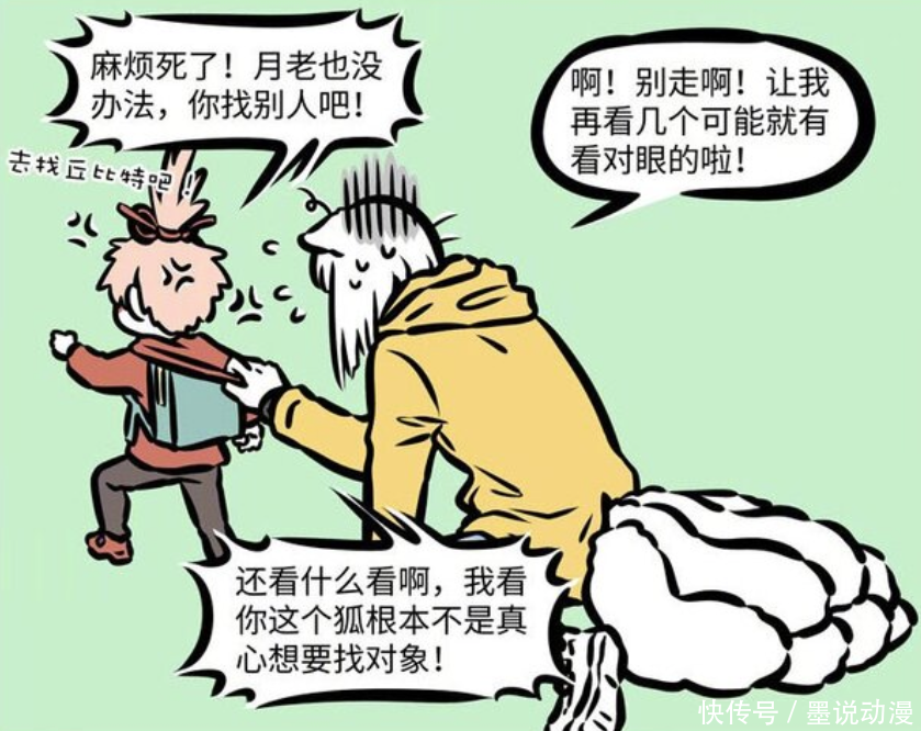 《非人哉》漫画版中,月老主管姻缘51配资,平时都在各个地方找人牵红线。九月发现月老之后,希望他帮忙解决脱单的问题,原本月老不想理九月,可是在她的央求之下,月老只能答应。给九月推荐了好几位之后,月老发现九月要求太多,所以再次放弃九月。感觉九月要是这么下去的话,找男朋友太难了。